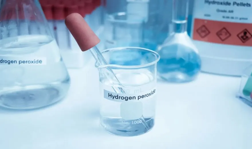 Hydrogen Peroxide is a powerful oxidizer and environmentally friendly bleaching agent, decomposing into water and oxygen. It is available in various concentrations.